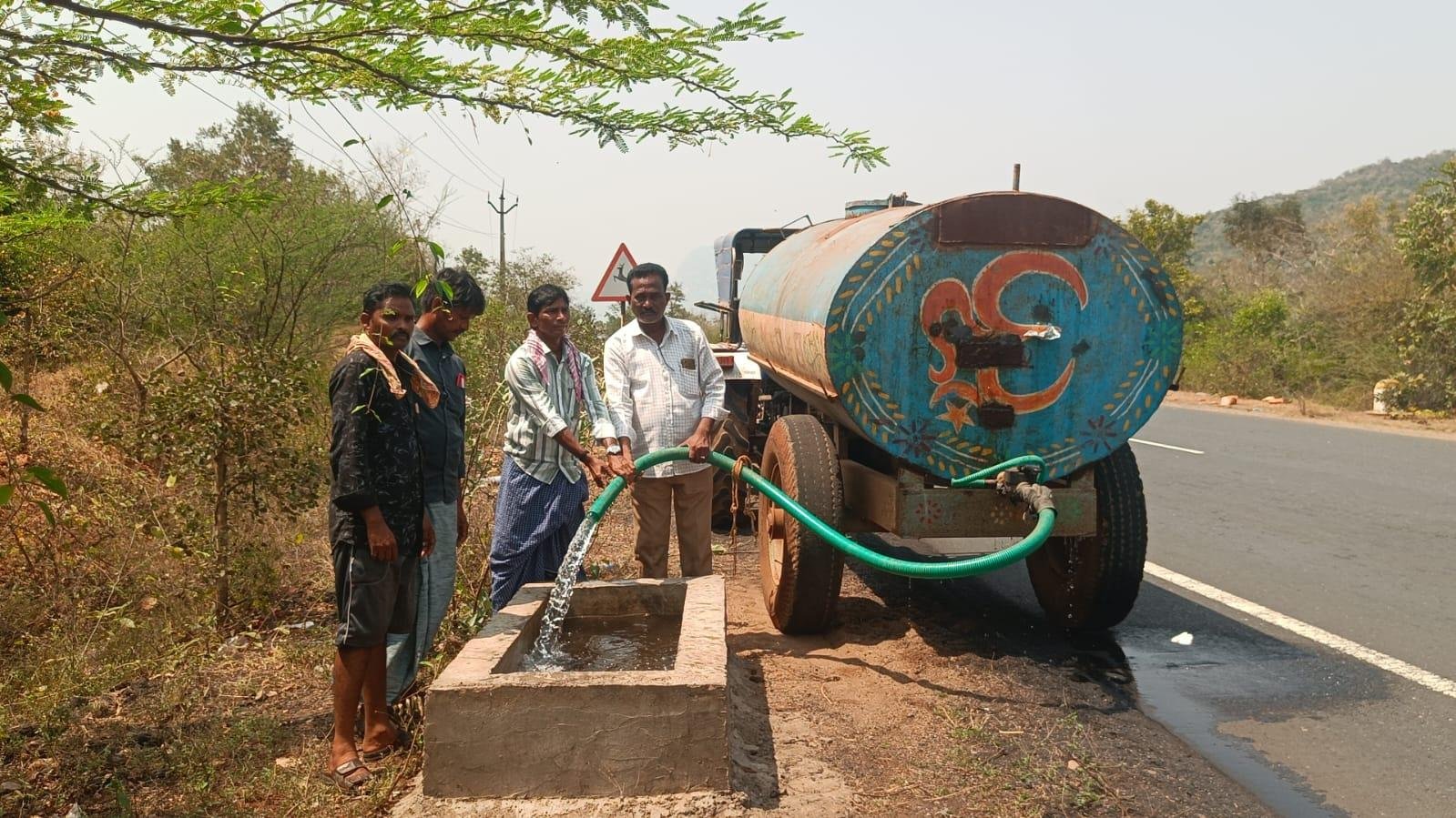 ఎండలు మండుతున్నాయి. భానుడి ప్రతాపానికి మూగజీవాలు అల్లాడుతున్నాయి. అడవుల్లో నీటి వనరులు ఎండిపోతుండడంతో జంతువులు దప్పికతో అలమటిస్తుంటాయి. ఈ క్రమంలో వన్యప్రాణుల సంరక్షణకు వేసవి నేపథ్యంలో మూగజీవుల దాహర్తిని తీర్చడానికి ఓ ఆపన్న హస్తం ఆదుకుంది జాతీయ రహదారి వెంబడి మర్రిపాడు నుండి బద్వేల్ మీదుగా గంగుంట వరకు ఐదు ఏర్పాటు చేసిన సిమెంట్ తోట్లలో ట్యాంకర్ సహాయంతో నీటిని నింపుతూ మూగజీవులకు దాహం తీర్చుతున్నారు మర్రిపాడు ఎస్సీ కాలనికి చెందిన జంతు ప్రేమికులు. కన్నెమరకల కుటుంబానికి చెందిన రమణయ్య, రమణయ్య ( RK) పెద్ద నరసింహులు, శ్రీనివాసులు, రత్తయ్య,దండు అశోక్,తొడేటి నరేష్.మార్చి నుంచి ఎండ తీవ్రతతో పాటు ఉష్ణోగ్రతలు క్రమంగా పెరుగుతుండడంతో అటవీ ప్రాంతాల్లో సహజ సిద్ధమైన నీటి వనరులు అడుగంటిపోతాయి. చెక్డ్యాంలు సైతం ఎండిపోయి అటవీ జంతువులకు ఇబ్బందిగా మారుతుంది. అడవుల్లో ఉన్న వృక్షాలు ఆకు రాల్చడంతో సరైన ఆహారం లభించని పరిస్థితి ఉంటుంది. జింకలు, కనుజులు, దుప్పులు, ఎలుగుబంట్లు, కుందేళ్లు, అడవి పందులు, నక్కలు, హైనాలు, ఇతర వన్యప్రాణులు, పక్షుల దాహార్తిని తీర్చేందుకు ప్రతి వారానికి ఒక సారి తోట్లకు నీటి నింపి ఆహారం కోసం అరటి పండ్లు, టమోటా, వేస్తున్నారు ప్రతి వారం ట్యాంకర్ల ద్వారా నీటిని నింపుతుండడంతో వన్యప్రాణులు, జంతువులు, పక్షుల దాహార్తి తీర్చు కుంటూ ఉల్లాసంగా గడుపుతున్నాయి.